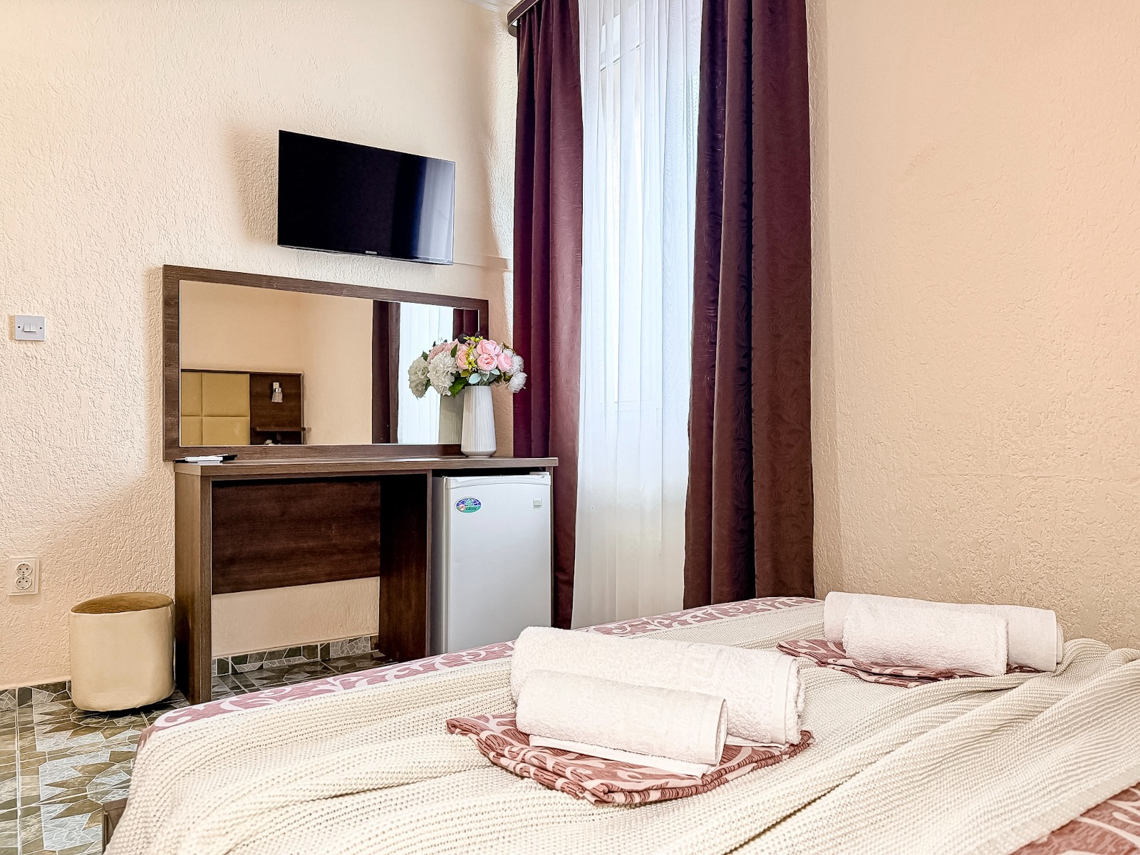 - Современные оборудованные номера: кондиционер, холодильник, телевизор, душ, с/у;